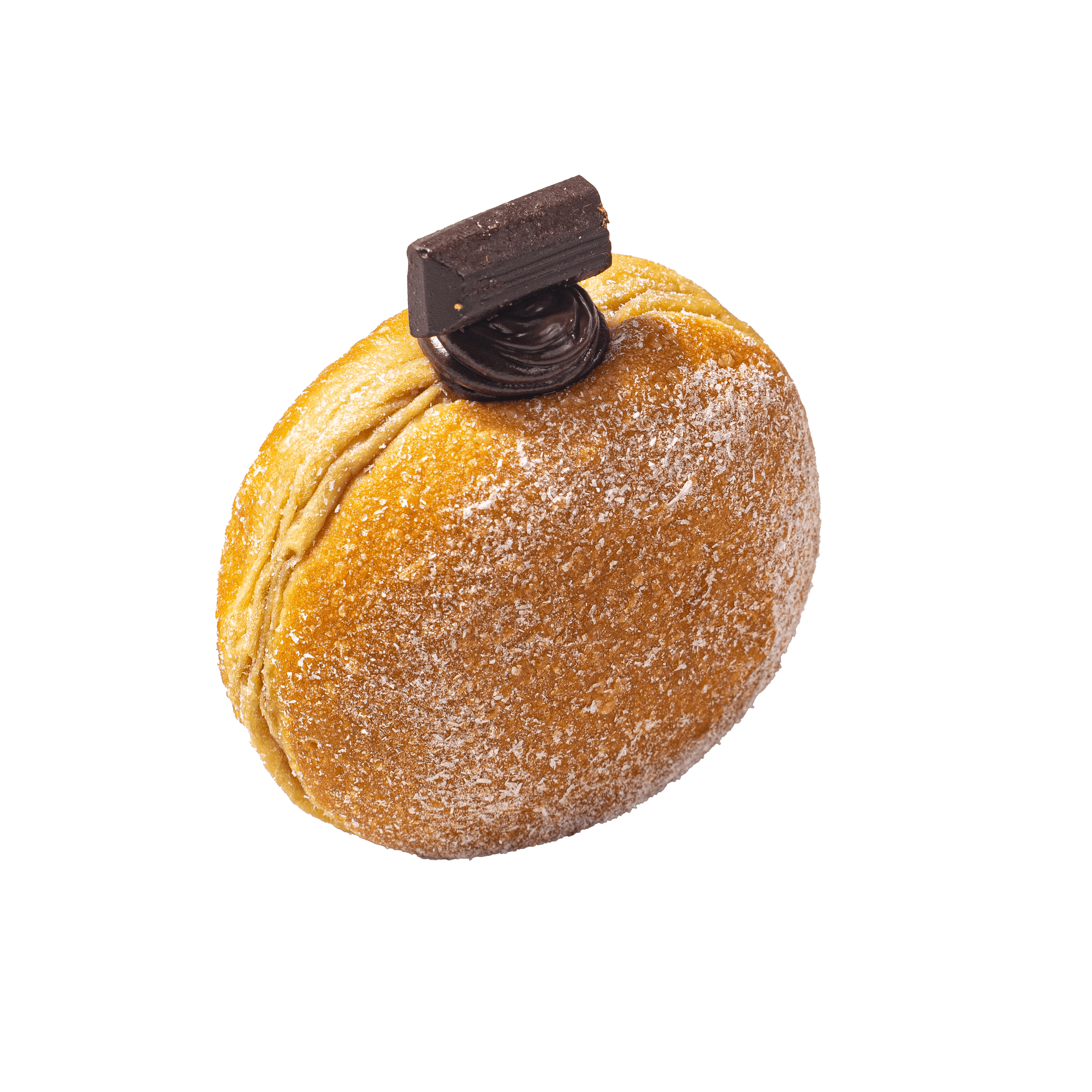 Chocolate dough, dark chocolate filling, and chocolate topping.