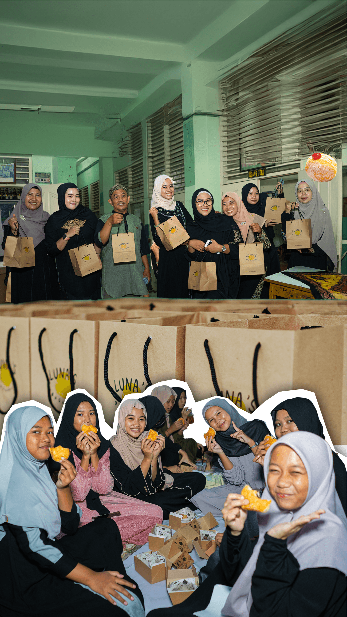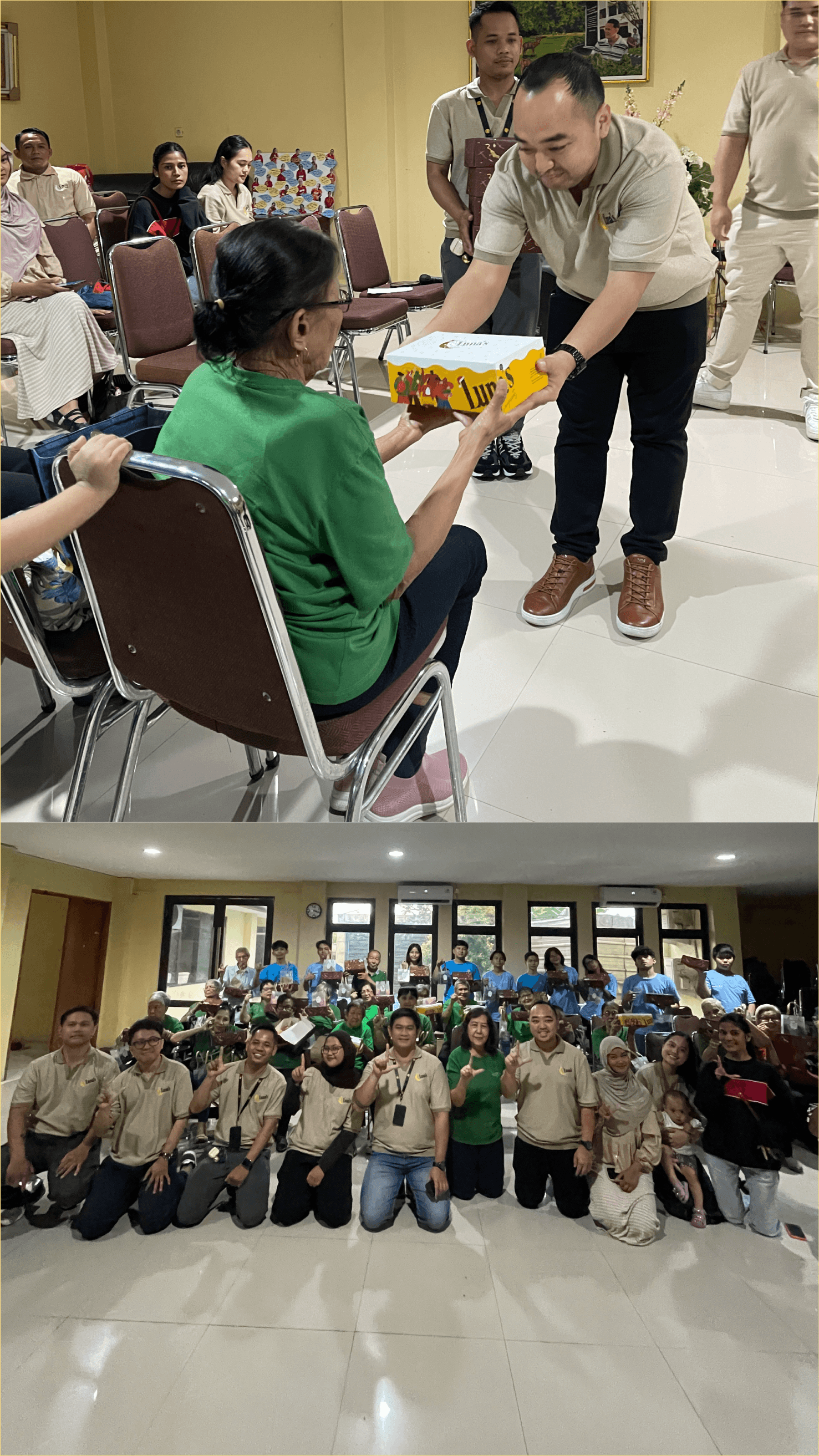 Kunjungan ke panti jompo untuk menghabiskan waktu bersama para lansia melalui kegiatan bernyanyi bersama, berbagi cerita, dan menutup kegiatan dengan membagikan Luna’s Doughnuts.