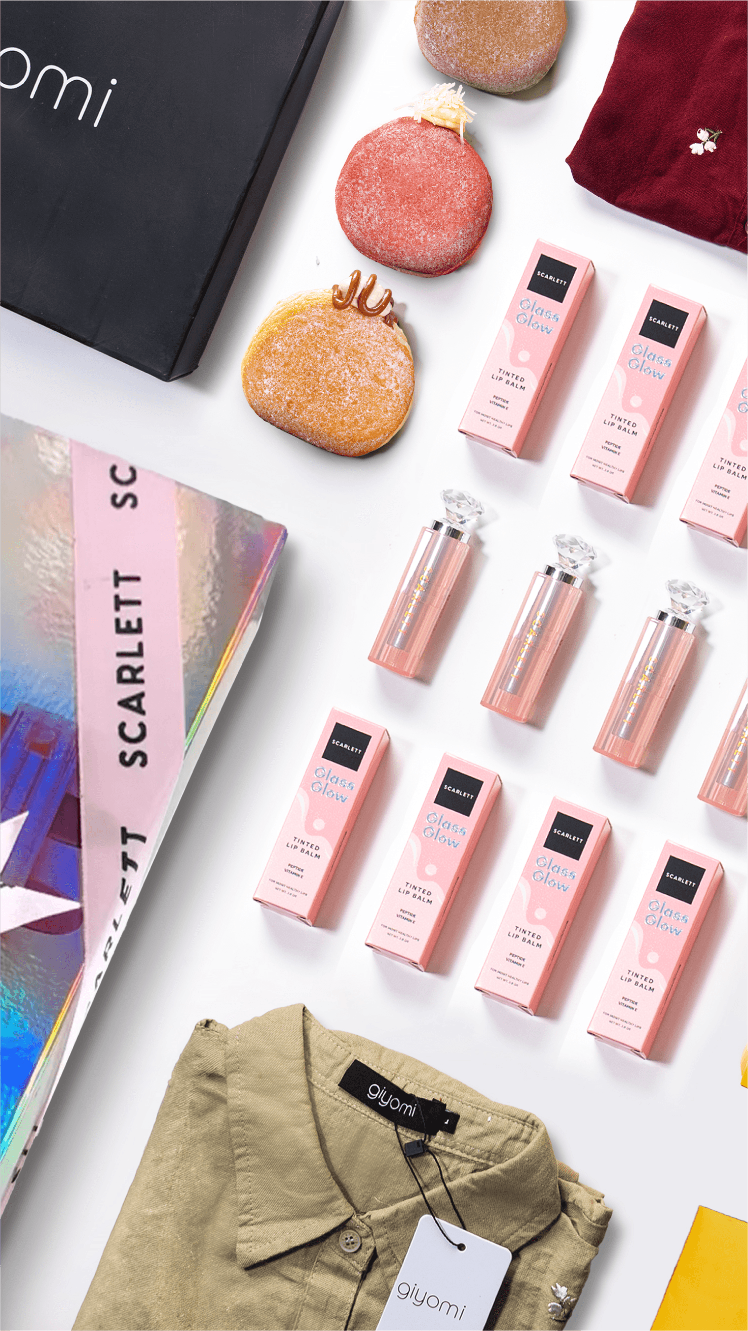 Kolaborasi campaign bersama Giyomi dengan koleksi fashion dan Scarlett melalui produk Tinted Lip Balm, dalam aktivasi promosi bersama