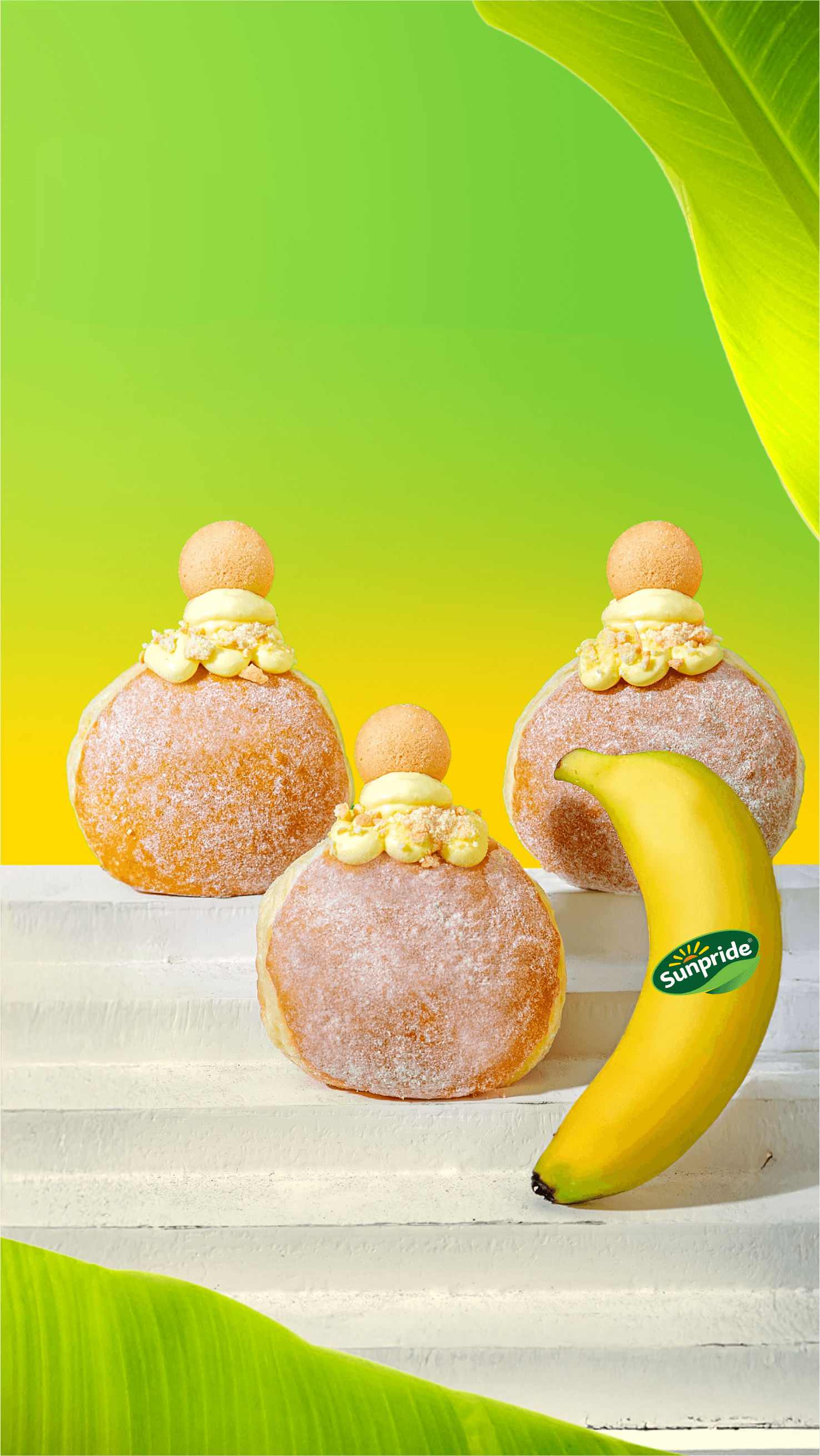 Kolaborasi menghadirkan varian donat dengan rasa pisang alami dari Sunpride.
