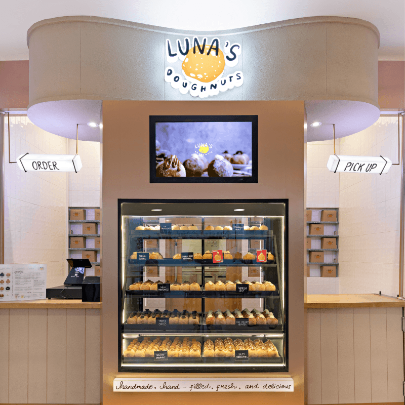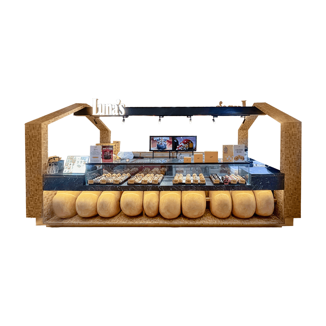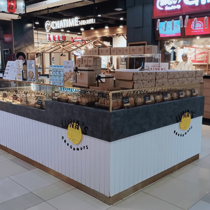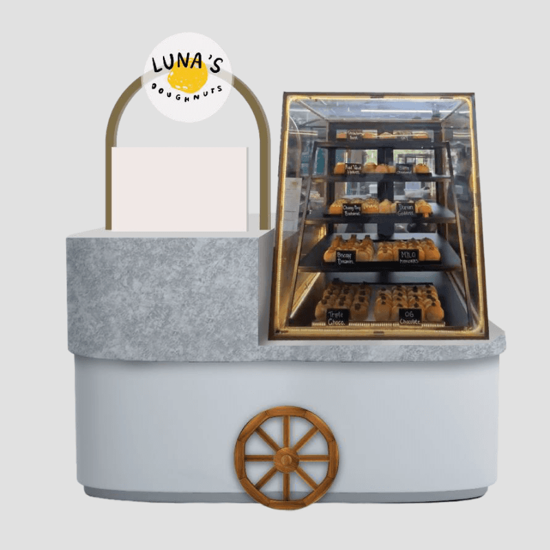 A small, flexible pop-up perfect for high-traffic areas, same fresh donuts, just in a more compact space.